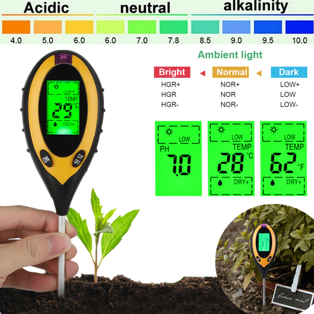 4 in 1 Function - This is a 4-in-1 multifunctional soil tester. The soil meter provides precise measurements of sunlight, moisture, PH value, temperature to help you take better care of flowers and plants.
